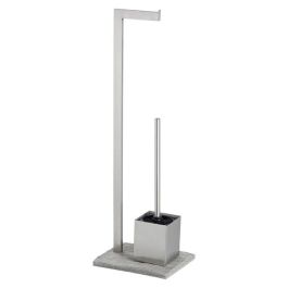 El soporte de baño independiente 2 en 1 Granite incluye un soporte para papel higiénico y una escobilla de baño.