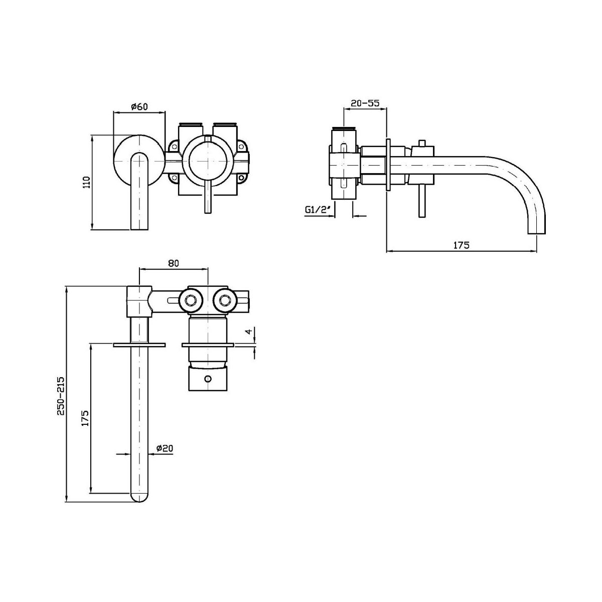 Zucchetti Helm grifo para lavabo empotrado acero ZHE720.X